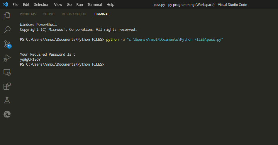 Open the terminal in Visual Studio using Ctrl + `