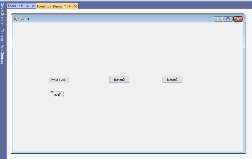 Let us change the name of the label to labelPressHere. A good convention is to create label names as per the action it operates to.