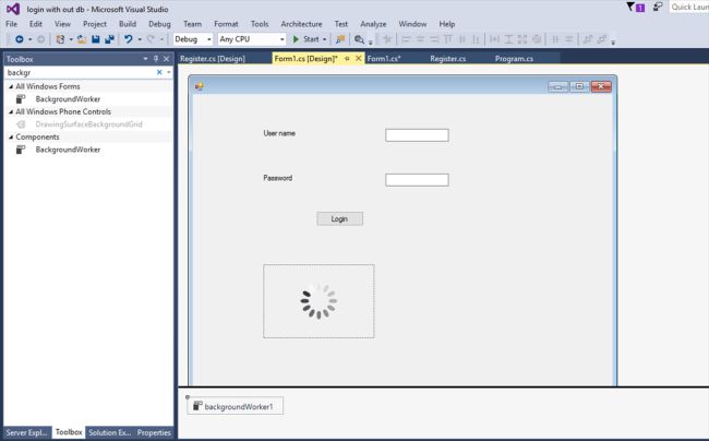 Click the Toolbox and Add >> Background Worker.