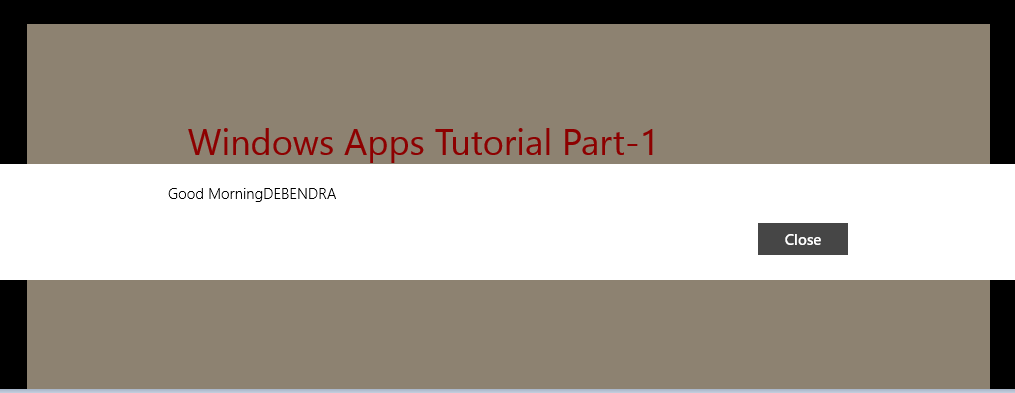 - MessageDialog msgbox = new MessageDialog("Good Morning" + " "+ txt_name.Text);