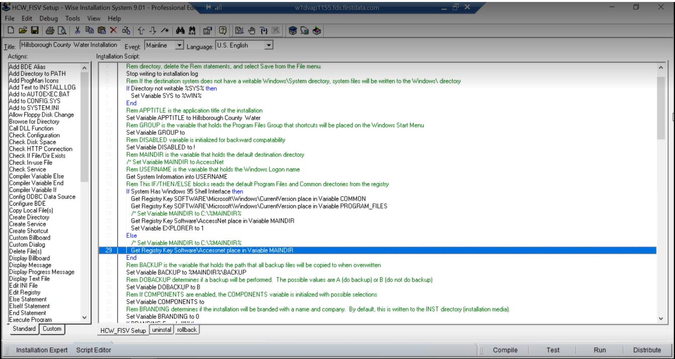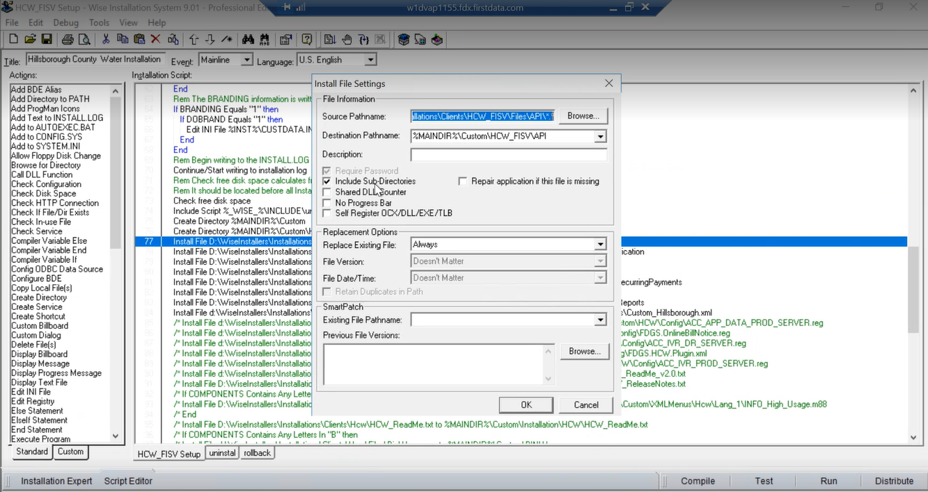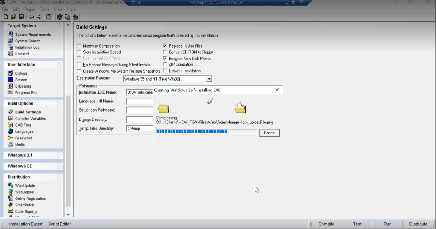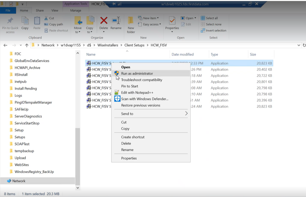 Copy and paste the created Wise Installer into the server to be installed, right Click => administrator => run: