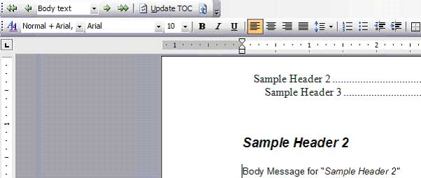 It is apparent that the Header 2 and Header 3 and Body are formatted differently and even in the Table of Contents the Header 2 is slightly offset from the Header 1.