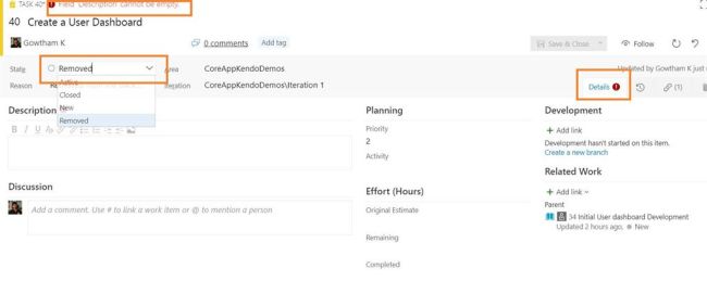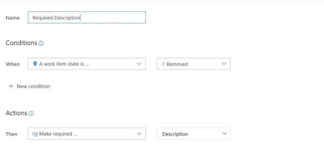 Let’s create an another rule - when the work item state is changed to removed, it will make a description as required.