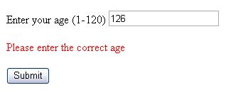 <asp:RangeValidator id="RangeValidator1" runat="server" ErrorMessage="Please enter the correct age" ControlToValidate="TextBox1" MinimumValue="1" MaximumValue="120" Display="Dynamic"></asp:RangeValidator>