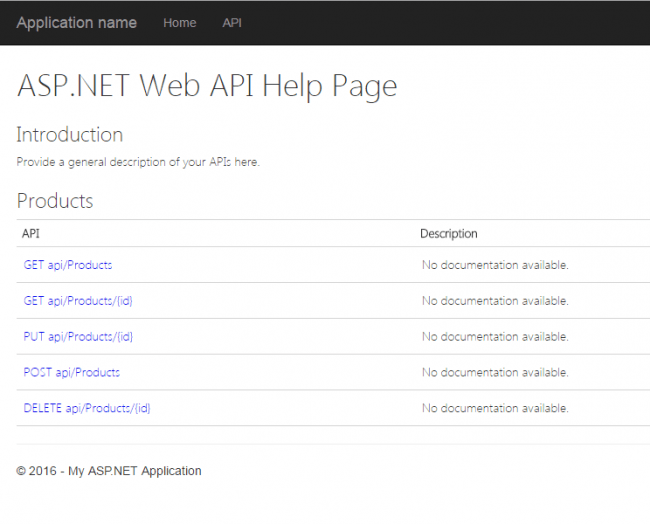 Now please run your application and go to the help page. You can see the API help page as follows.