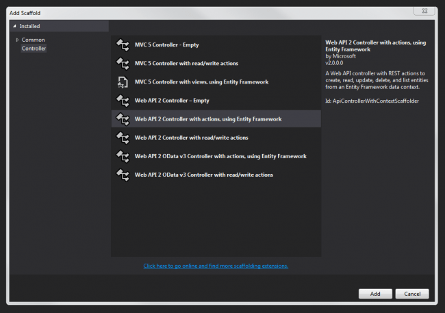 Web API 2 Controller with actions, using Entity Framework