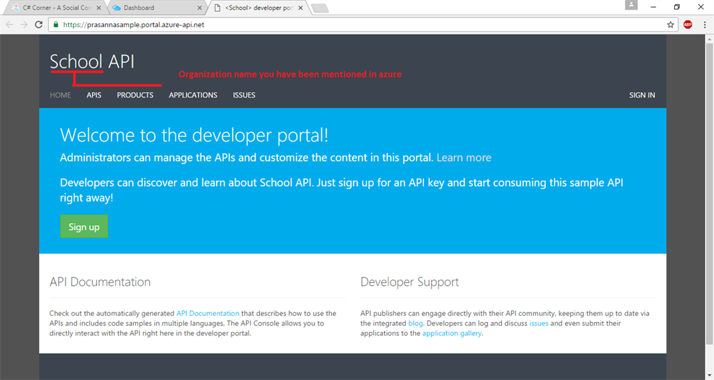 You will be navigated to a developer account. In this, you will be able to find your organization name.