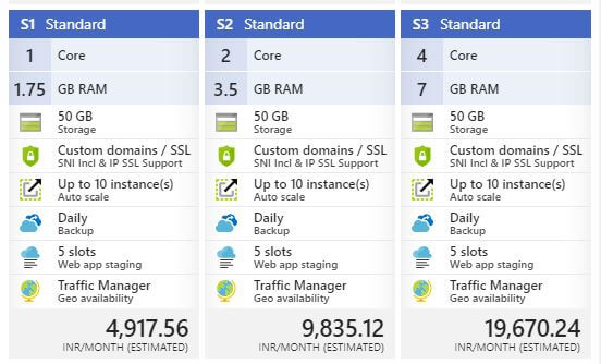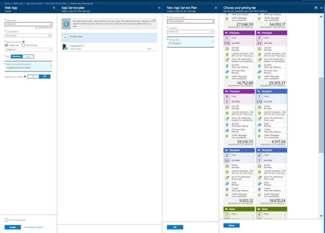 Let me create a web app with Standard pricing tier to deploy my application, as shown below.