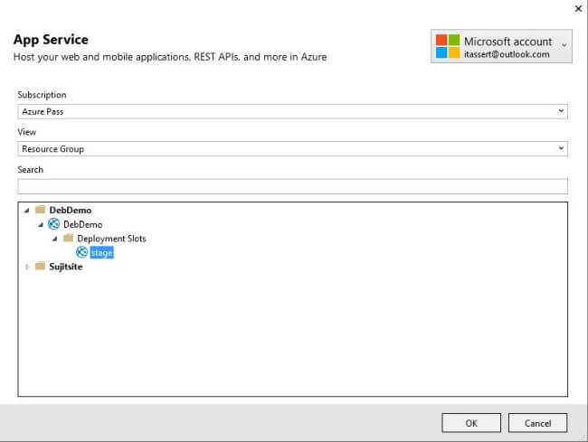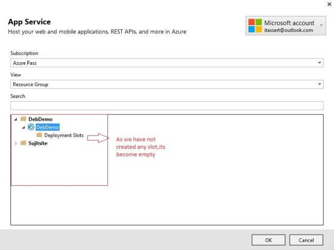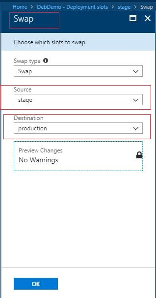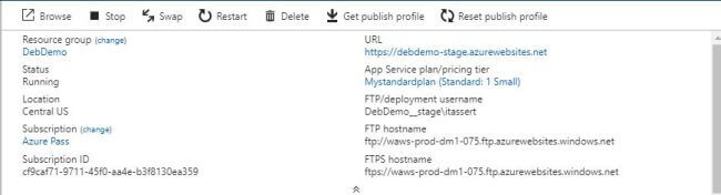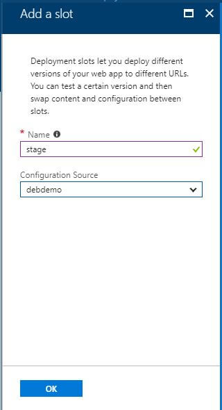 For example, if my Azure Web App is called DebDemo and I create a slot called staging, then my slot will be an Azure Web App with the name DebDemo(staging) and its url will be,