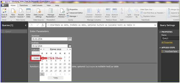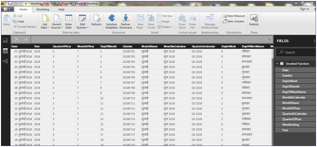Now click on the final step of creating date table from a blank query. Click on Invoke button. Now the date table is already created as below. You can now use it wherever you want to use.