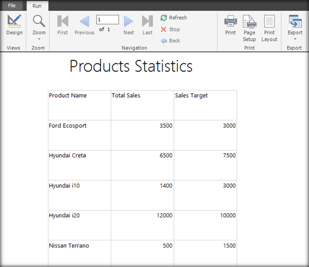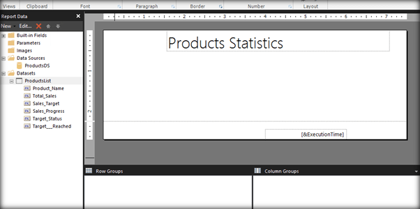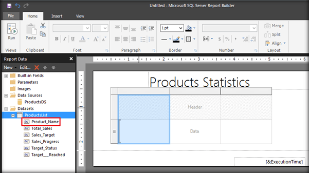 Report builder provides options to set the font, background colour, and offers other styling methods. We can add a bit of cosmetic changes to the report, as shown below: