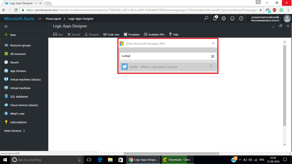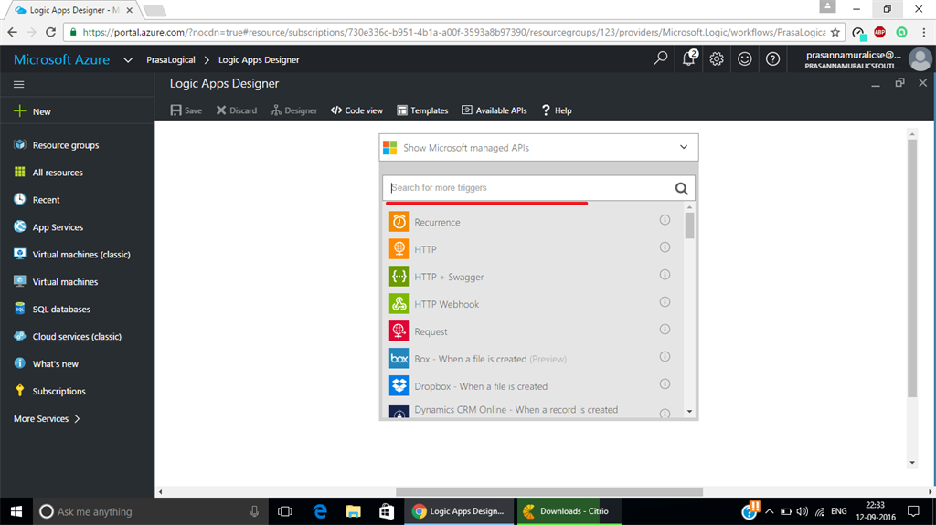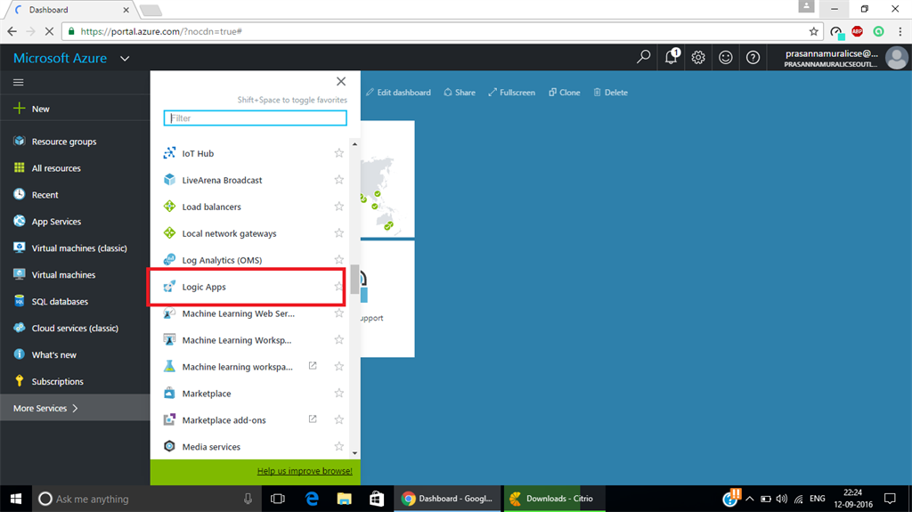 Step 2- Click More Services in Azure Management portal and find Logic Apps.