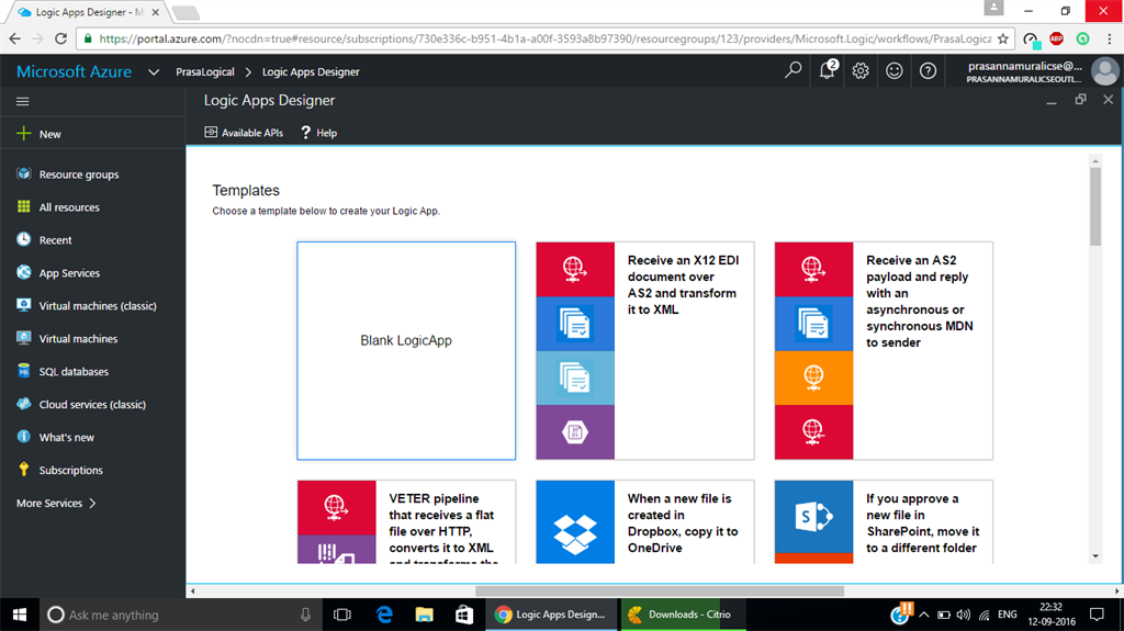 Step 5- In the Logic Apps Designer window, choose blank template.