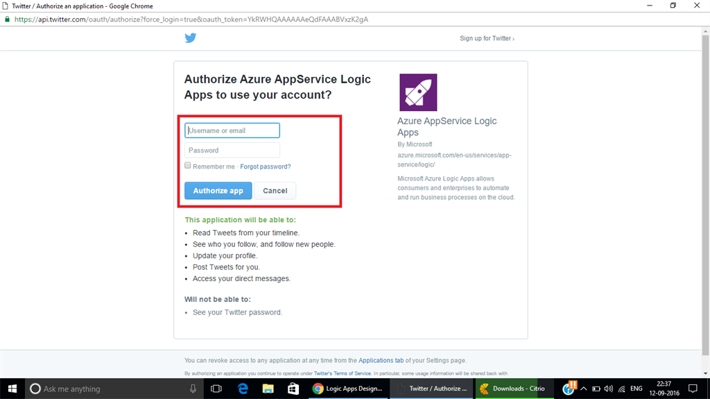 Step 7- If we add the Twitter API in our designer window, it automatically shows the “Sign In” option.