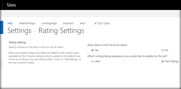 We should also set the radio button ‘Allow items in this list to be rated?’ to ‘Yes’.