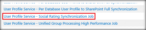 Once the rating is given to the document, the values are stored in the social tagging database. SharePoint Timer jobs play a vital role in aggregating the social ratings and updating it to the content database. If we go to Central Administration -> Monitoring -> Review Job definitions, we can see User profile Service - Social Rating Synchronization’ timer job, which is used to synchronize the ratings between the social rating database and the content database. By default, it is set to run hourly.