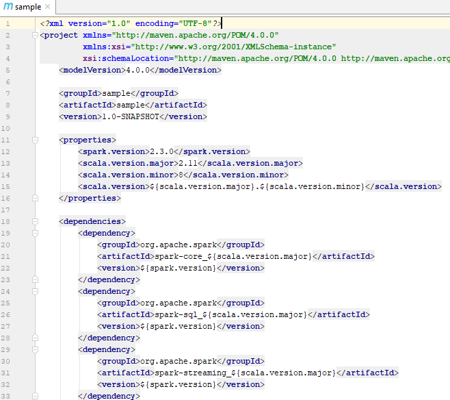 The project also contains a “pom.xml” file. This is the main file of all the Maven projects. This file will contain all the external dependencies information about our project. As we have created a Spark project this file contains the “spark-core” and “spark-SQL” libraries. Maven will automatically download these references from Maven global repository and save it to a local folder. In future projects, it will refer to local reference only.