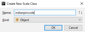 Please give a valid name to our new Scala object. Please choose “Kind” as “Object”