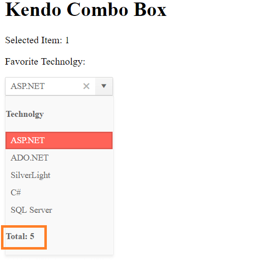 Use this template if you need to add the footer for the Kendo Combo box list items. To define a footer template, nest an <ng-template> tag with a