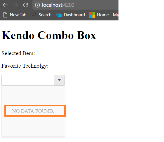 Use this template if you need to display a customized message and there is no list in Kendo Combo box. To define a no data template, nest an <ng-template> tag with a
