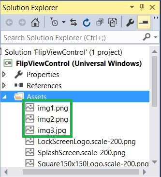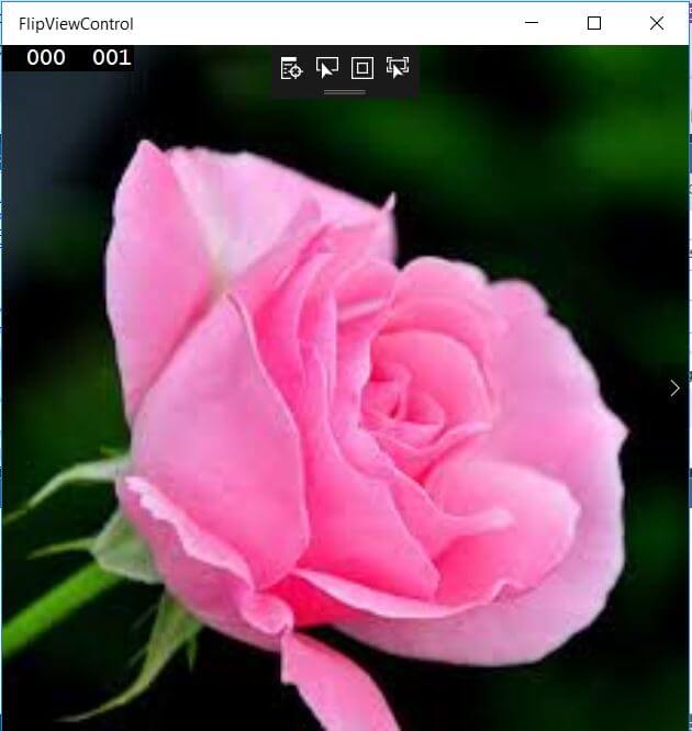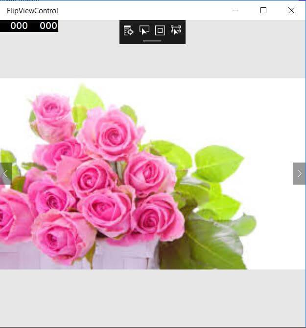 FlipView is a control for browsing the images and other items in a collection, such as photos in an album or items in a product details page, one item at a time. FlipView is best for perusing the images in small to medium collections (up to 25 or so items). For touch devices, swiping across an item moves through the collection. For a mouse, navigation buttons appear on mouse hover. For a keyboard, arrow keys move through the collection.