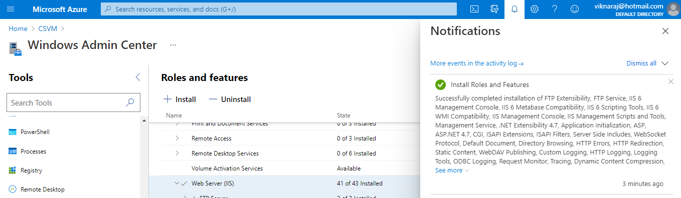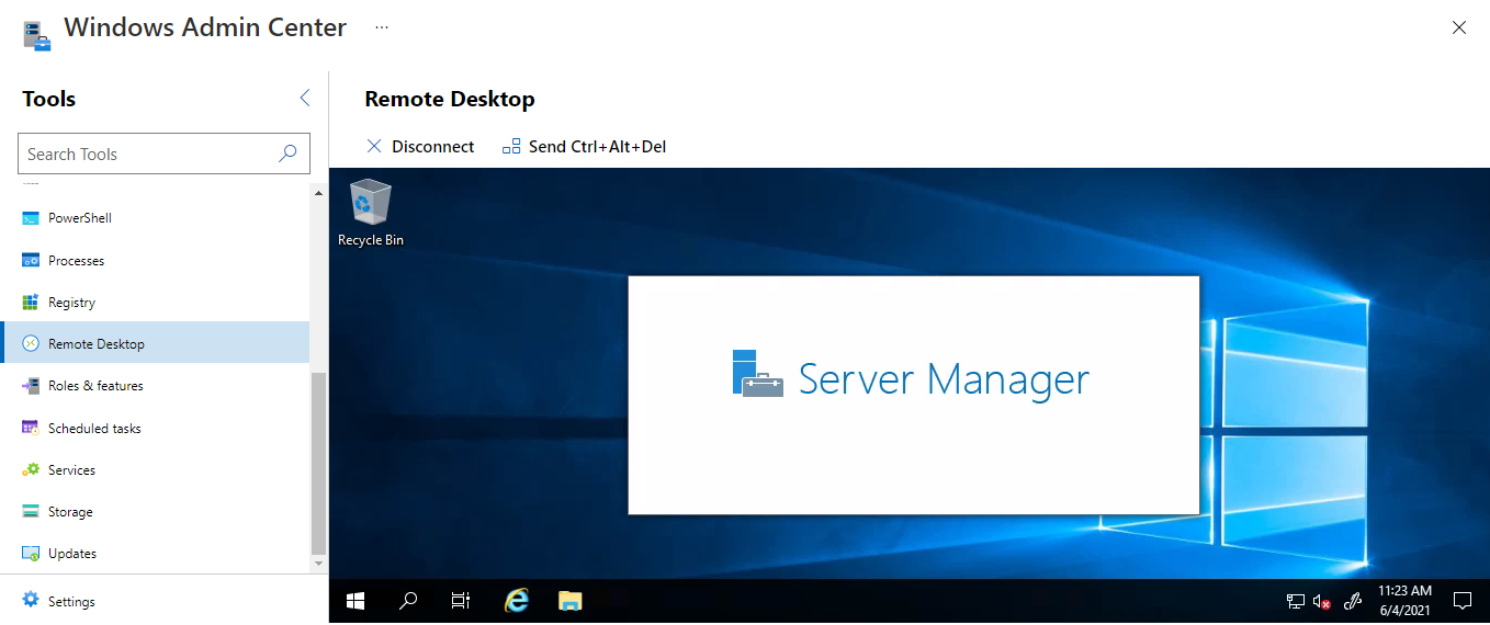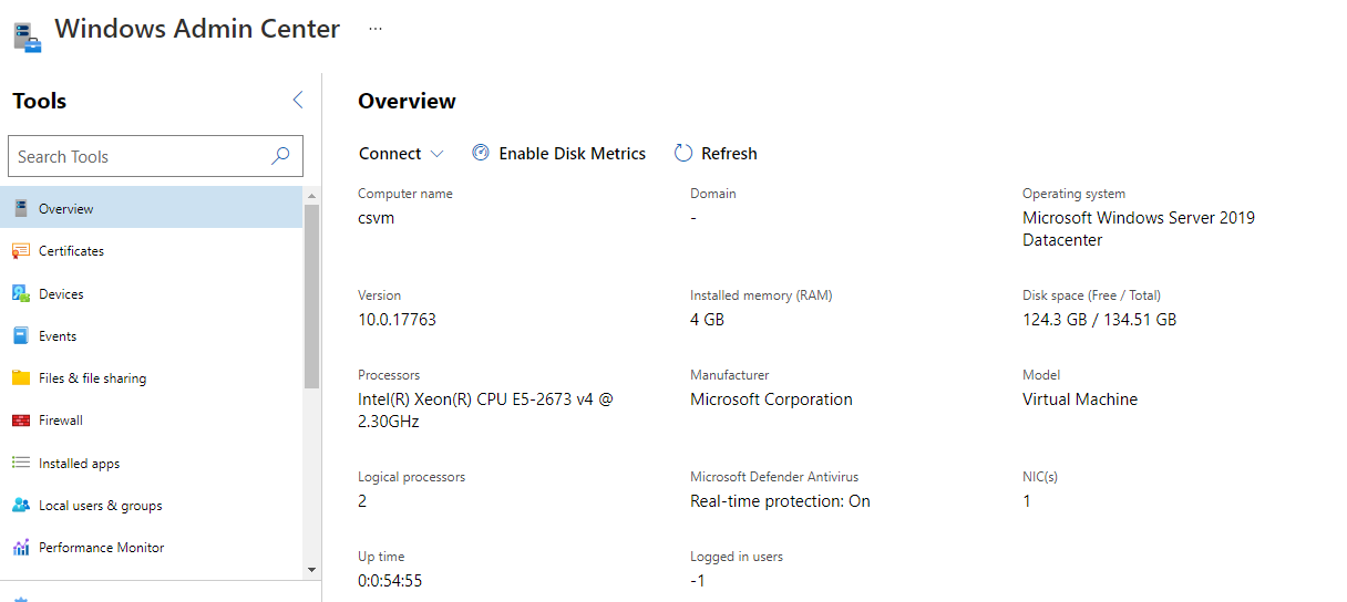 Microsoft Azure has another new feature called Windows Admin Center (preview). We can manage our virtual machine through the Windows Admin Center (preview) in the Azure portal. We can manage operating system functions from the Azure portal as well as work with files in the VM without using Remote Desktop or PowerShell. This feature is only available for Windows Server 2016 and Server 2019.