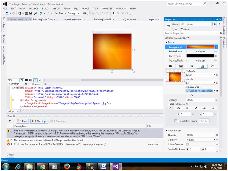- In App.xaml form, name your default form. in this project, it is named as Login.xaml.