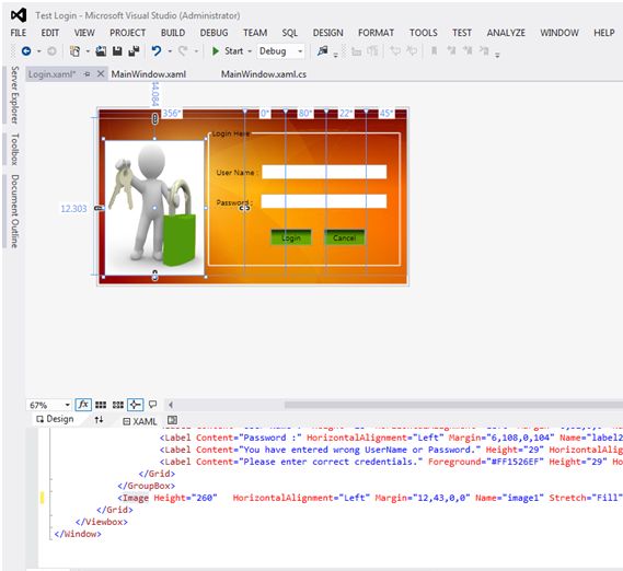 - Now, we will be adding group box and inside the group box, we will be placing a text box and buttons for the login.