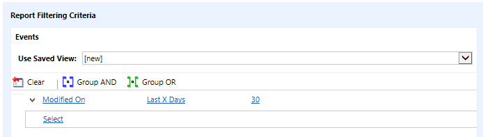 - In the next step, add filter criteria to your report. By default, you will get last x days criteria, added for 30 days (This could be an interview question ;) ). You can design your filter just like we can do in Advanced find. Let’s keep it default and click Next.