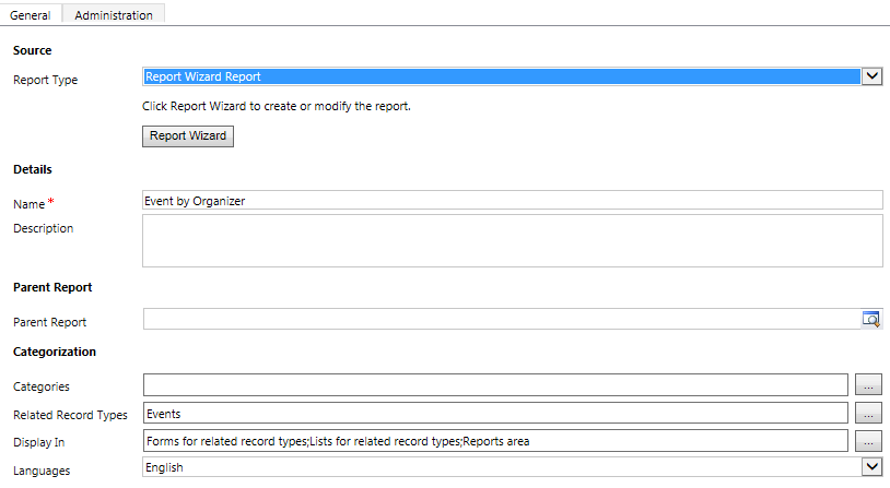 - Click Run Report to test your report. We should get the events list, based on the organizer.