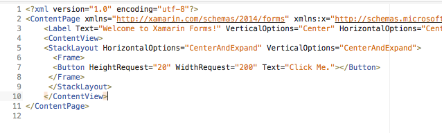 -                 <Button HeightRequest="20" WidthRequest="200" Text="Click Me."></Button> </Frame>