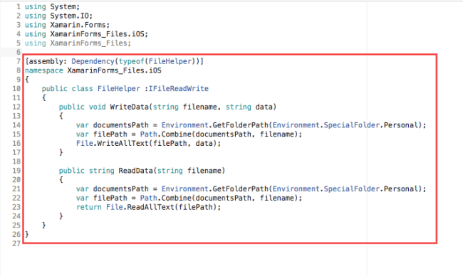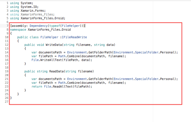 - DependencyService.Get < IFileReadWrite > ().WriteData(fileName, data);