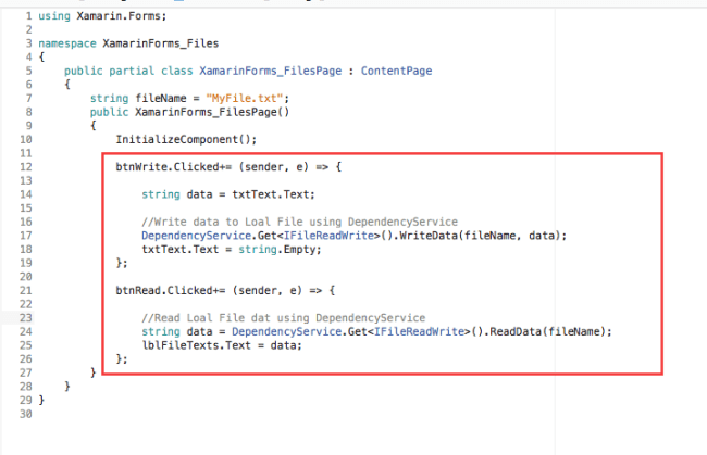 - string data = DependencyService.Get < IFileReadWrite > ().ReadData(fileName);