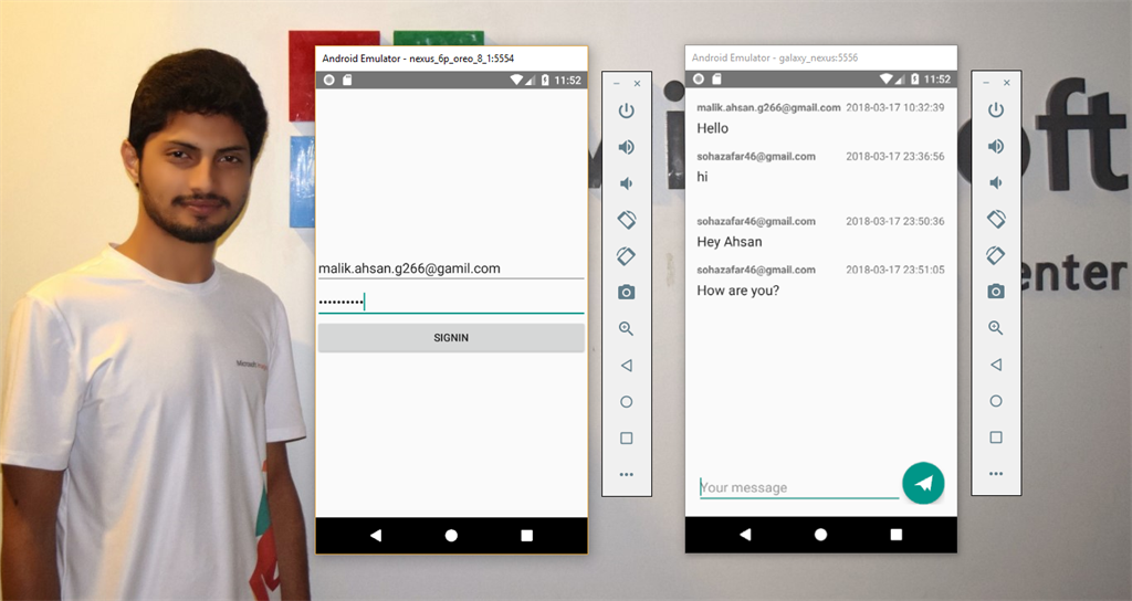 Finally, we are finished with our Xamarin Firebase Chat app. Just rebuild and run the project. You will have results like below. The first time, each user needs to sign in to their Gmail account and after successful sign up, they can use this chat application.