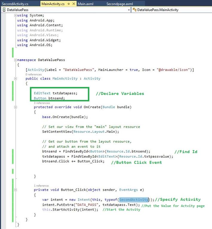 - SetContentView(Resource.Layout.Secondpage);