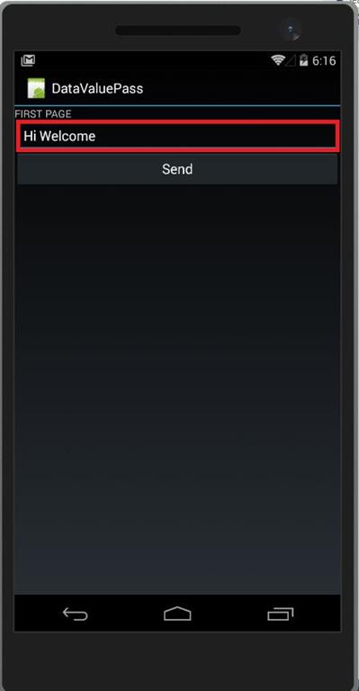 - First Screen Give the Text Box Value “Hi Welcome" then Click Send Button.Next Move Second Screen.