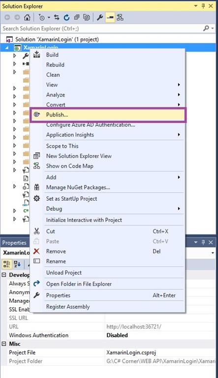 Next go to Solution Explorer-> Project Name then Right Click to Click Publish then open new popup window for Publish Web.