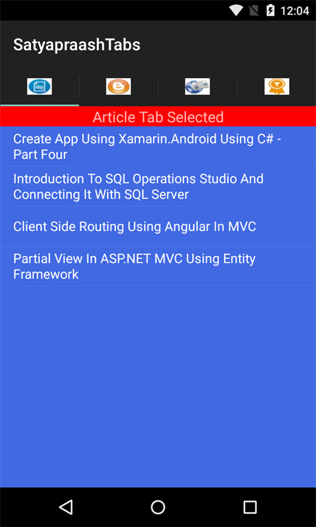 In this module, I have added some tabs and put some listviews on every tab page. Then, I set the icon of the app manually that makes it easy to identify the proper implementation of the app.