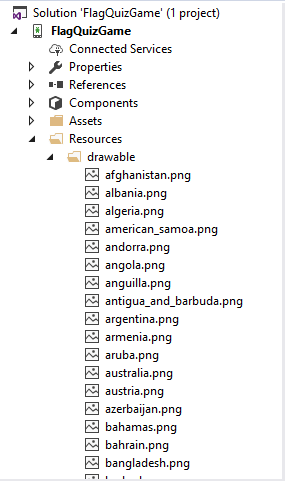 Open Solution Explorer -> Project Name -> Resources-> Drawable. All countries' flag images and medal images paste into drawable folder.