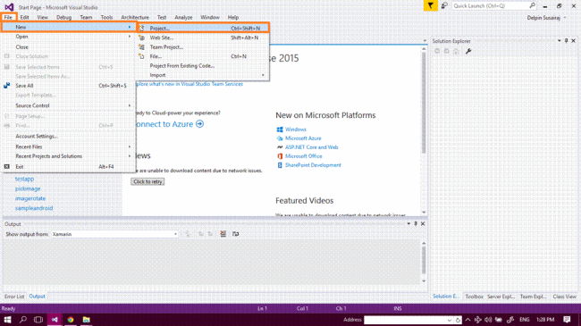 Click File >> New >> Project, or click (Ctrl+Shift+N).