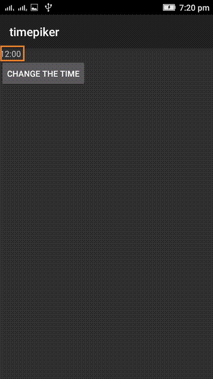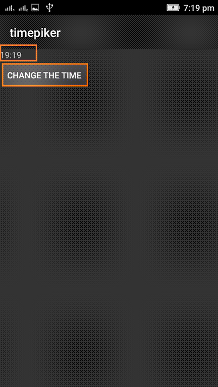 - <Button android:id="@+id/pickTime" android:layout_width="wrap_content" android:layout_height="wrap_content" android:text="Change the time" />