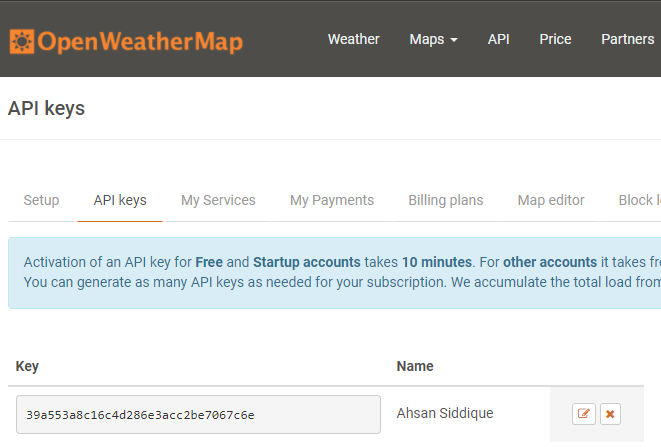 First, we need to open Weather Map API key. Go to https://openweathermap.org create an account and get the API key.