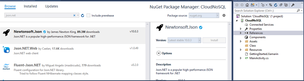 Next, go to Solution Explorer-> Project Name-> References. Then, right-click to "Manage NuGet Packages" and search for JSON. Install the Newtonsoft.Json Packages.