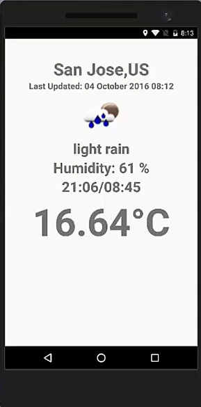 Finally, we have done our Weather app just rebuild and run the project. You will have the result like below.