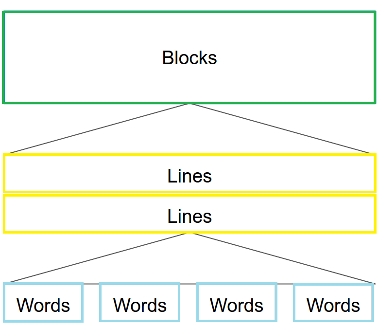 The text recognizer breaks the content into pieces, lines, and words.