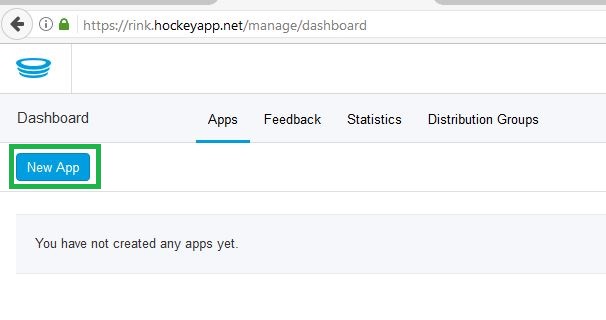 Go to http://hockeyapp.net/. Click New App button and open New Window.