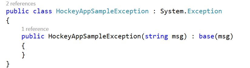 -     public HockeyAppSampleException(string msg): base(msg) {}