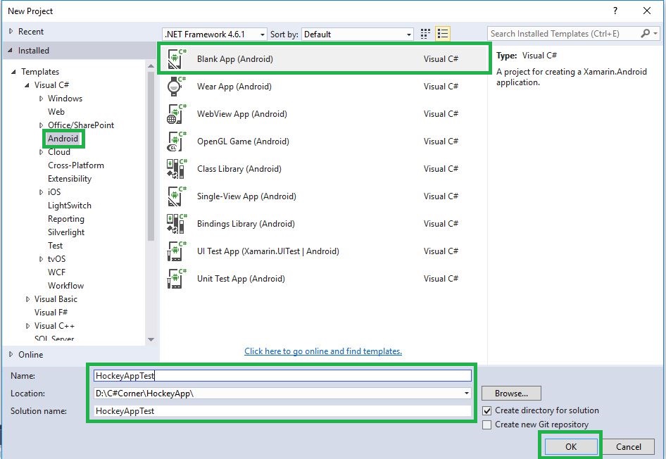 Open Visual Studio -> New Project -> Templates -> Visual C# -> Android -> Blank App.