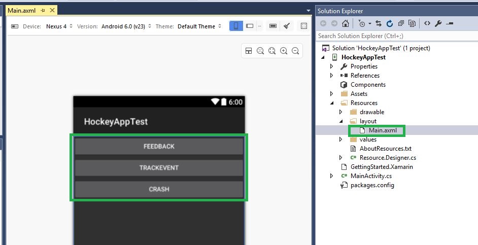 Open Solution Explorer-> Project Name-> Resources-> Layout-> Main.axml. Design the page for the Button Event Handler. Here, I created 3 buttons.
