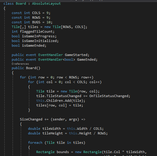 In this step, open Solution Explorer >> BugSweeper (PCL) >> MainPage.xaml.cs and double click to open MainPage.xaml.cs. Here is the code.